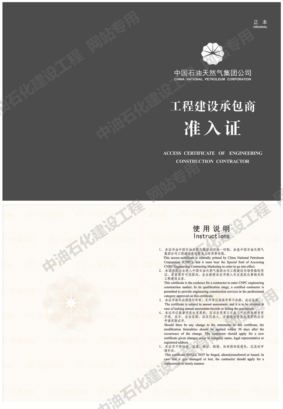 中油石化建設工程有限公司(CPPC)成立于2001年8月,公司現注冊資金1.1268億元。 經過20年的發展,CPPC形成了以石油化工安裝工程、長輸管道工程、市政工程、鋼結構制安為四大核心業務,以管道技術服務、送變電工程、消防工程、維保-搶險-投產保運為四大輔助配套業務的核心技術品牌,具備PC總承包能力和EPCC總承包能力。至2022年,公司具有施工總承包資質5項,施工專業承包資質4項,不分等級2項;特種設備壓力安裝改造維修許可證,承裝承修電力,中國工業清洗企業物理、化學清洗A級資質等。 公司成立20多年來,累計完成場站建設557座,管道施工6000多公里,輸電線路施工3700公里,電力電纜施工8000多公里,建筑施工950余萬平方米,年營業能力超過15 億元。